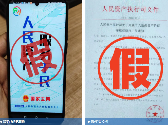 民族资产解冻类诈骗。不法分子冒充“人民数据”公司的名义,伪造“文件”,制作散布涉诈APP,声称完成个人数据资产变现权确权,能立刻提现个人所有数据资产,同时虚构“特别国债”等高额理财项目实施诈骗。