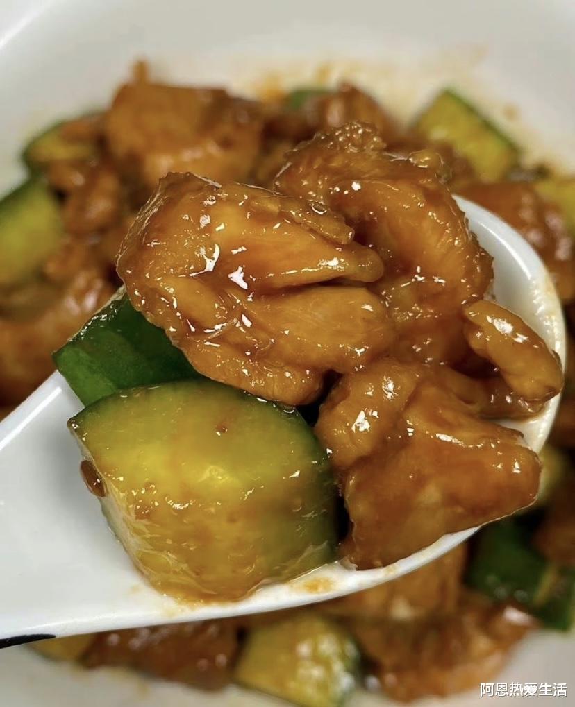 营养小知识:酱爆鸡丁不仅好吃,营养也很丰富!鸡胸肉富含优质蛋白质,脂肪含量低,特别适合健身的朋友。黄瓜富含维生素C,还能解腻。中医认为,葱姜蒜性温,能化湿解腻、驱寒理气,秋冬季节吃特别合适!