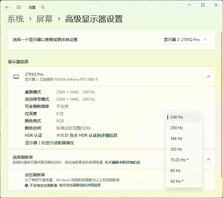 27X1Q Pro原生支持2K分辨率(2560×1440),刷新率最高支持到240Hz。
