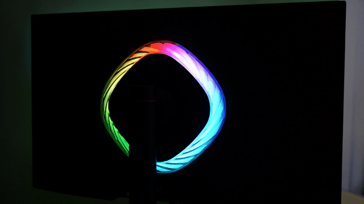 电竞显示器少不了RGB灯效的Buff加持,环带氛围灯围绕着屏幕背部的壁挂VESA接口,内置5种灯效模式,助力玩家沉浸战斗,竞技激情更澎湃。