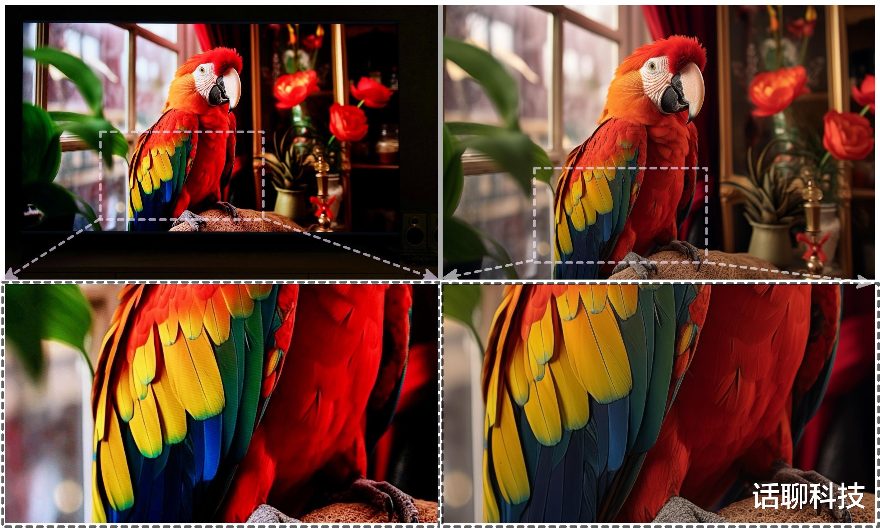 有多强呢?下图是播放4K HDR电视剧时TSR计算画质与标准画质的对比,可以看到无论色彩显示、对比度还是细节呈现上有多给力。