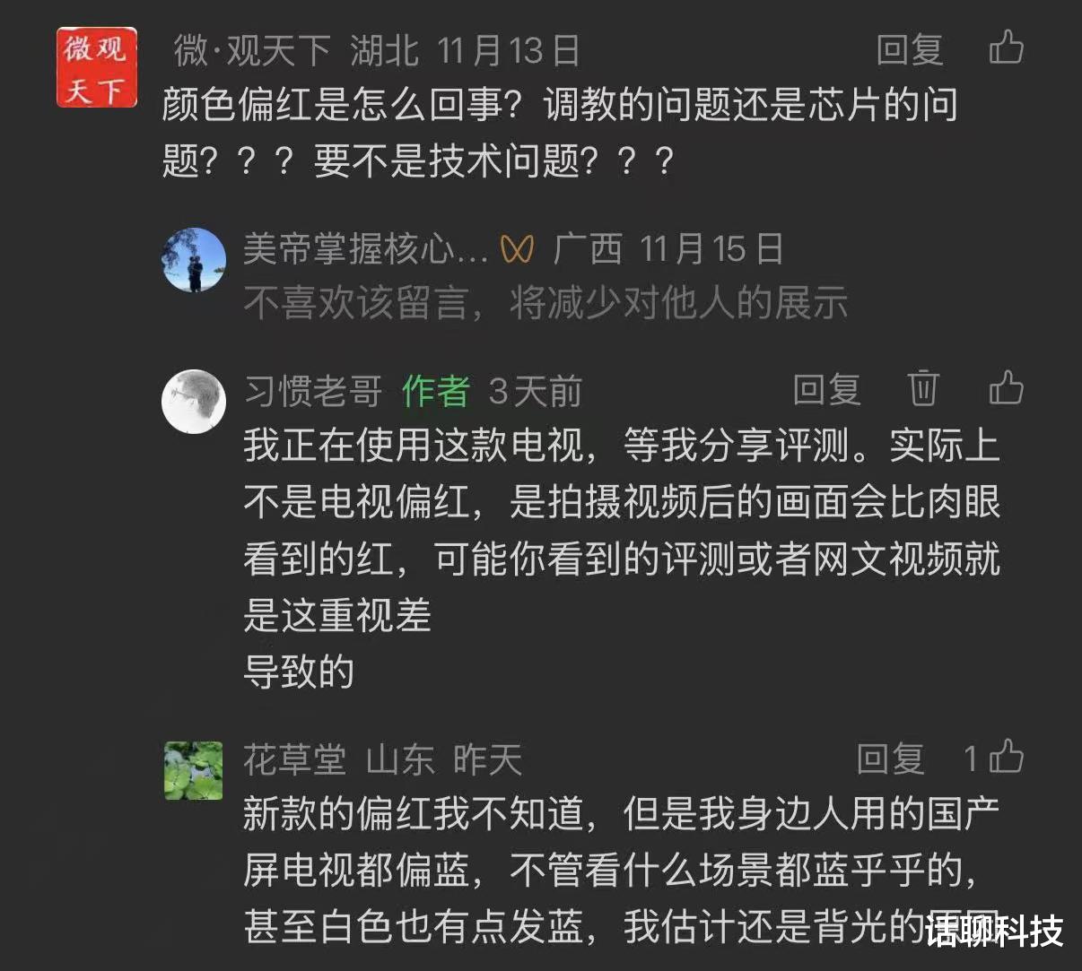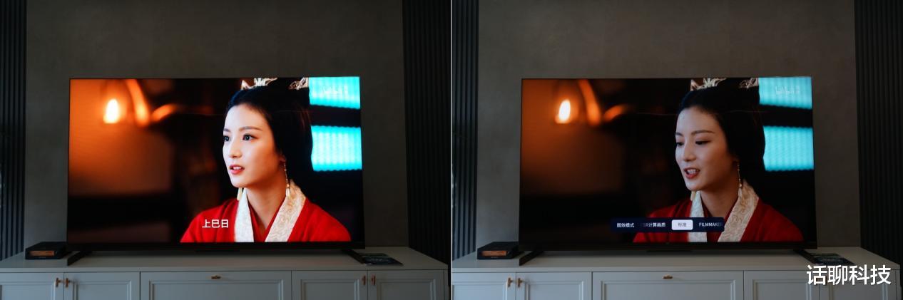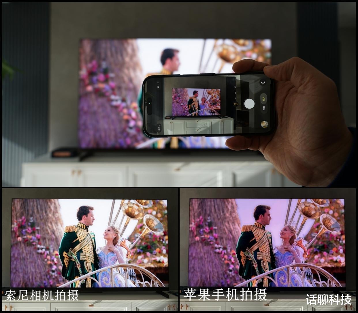 并且这种“偏红”现象,在手机拍摄电视画面时也会出现,上图就是例子,同样的画面,索尼相机拍出来,色彩与肉眼更接近,但苹果手机拍出来,就会出现自动白平衡色彩偏色的问题。这也就使得有些我的粉丝还以为是本身电视有什么问题,专门留言来问我,其实这是手机色彩空间不匹配的问题。因为实测TCL 85X11L电视,肉眼看到的画面是白平衡更好,色彩更正的。