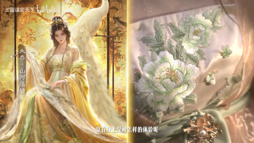 最值得一提的是,游戏近期与国家级非遗苏绣的联动。邀请到苏绣传承人姚老师,将"二乔南屏"传说融入大乔&小乔的武将外观设计。采用被大英博物馆收录的"双面双异绣"技艺,一扇两面分别呈现白牡丹的清雅与粉芍药的热烈,让千年非遗在游戏中焕发新生。这种传统文化与现代娱乐的碰撞,就像足球场上经典战术与新兴打法的融合,总能给人带来惊喜。
