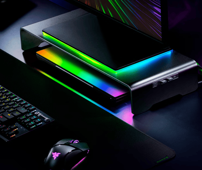 作为雷蛇Chroma生态的一员,它自带多区RGB灯带,颜色和动态效果都能自定义。通过配套软件,还能和雷蛇的键盘、鼠标等其他设备同步光效,随着游戏或音乐变换色彩,让整个桌面的灯光效果统一起来。灯光亮度也会根据环境光线自动调节,晚上使用不会刺眼。
