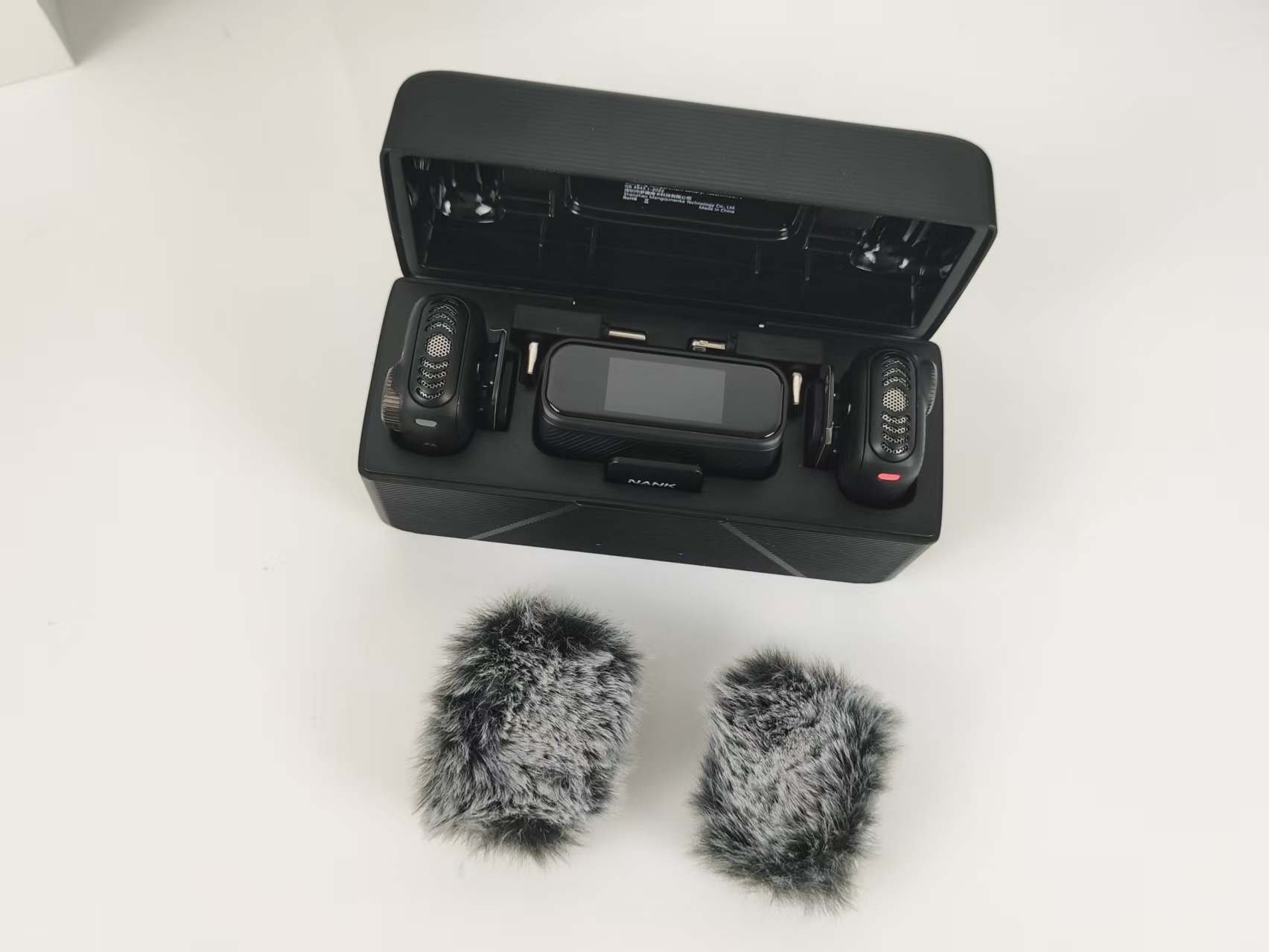 初见南卡Qmic,那磨砂硬壳设计的收纳盒映入眼帘,乍看之下,似是随性之作,实则暗藏设计巧思,两个领夹麦、一个接收器以及两个Lighting转接头,被精准的地安置其中。贴心的是,南卡还配备了3.5mm音频线、两副Type-C耳机、毛绒防风罩、充电线和专用的收纳袋,对于经常外出拍摄的人来说非常友好,从此无需再担忧配件散落丢失的问题。而且,这个收纳盒还具备充电仓的功能,可提供24小时的续航时间。