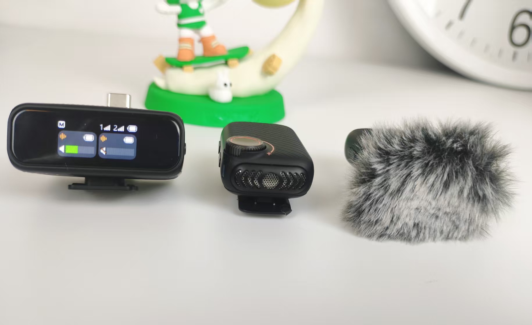 麦克风本体小巧精致,长度仅6.8厘米,重量约21克,表面采用磨砂质感的ABS材质,配合斜纹肌理设计,摸起来温润不滑手。固定方式为夹子和磁吸两种类型,适用场景和范围也更加广泛。