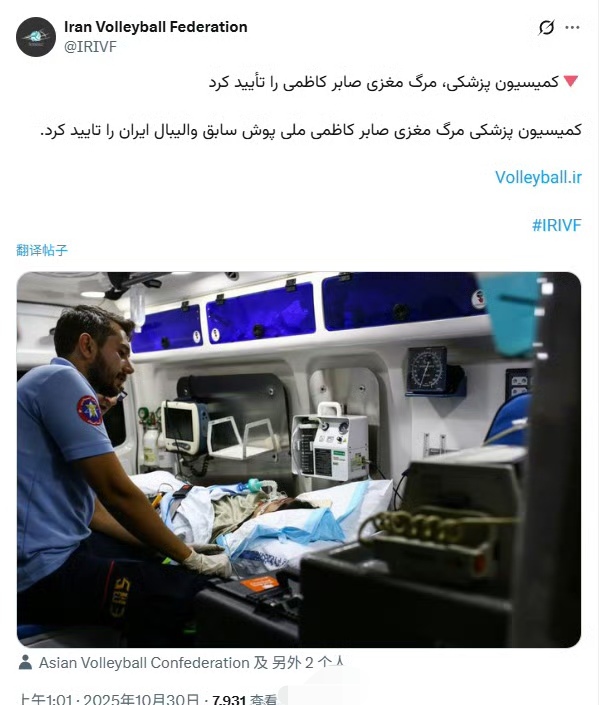 突发!伊朗排协凌晨官宣,受伤男排国手脑死亡