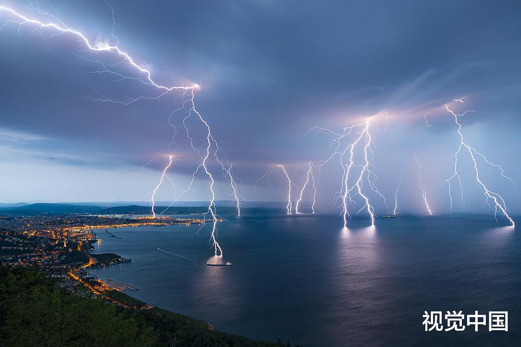 本来阴沉的天突然开始轰隆隆打雷,闪电在云里头乱窜,甚至有几道直接劈了下来。而那个飘着的人呢,张开胳膊,好像要拥抱那些闪电似的。突然,几十道闪电一起朝他劈过去,可那人一点事儿没有,看着还挺享受。