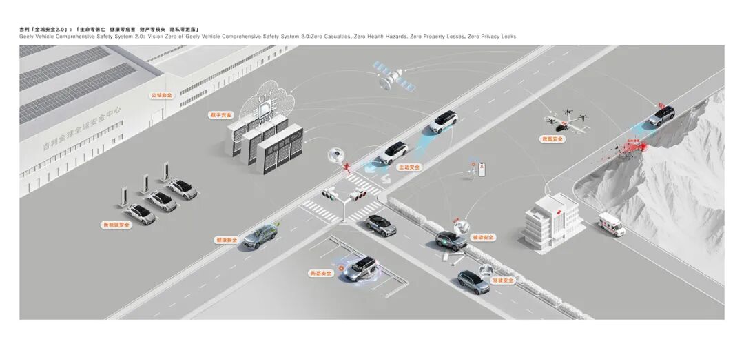 以往我们说安全,一般都是车身强度、传感器数量等等。然而,如今的安全已经进化到了体系层面,吉利就提出 “全域安全2.0”体系。