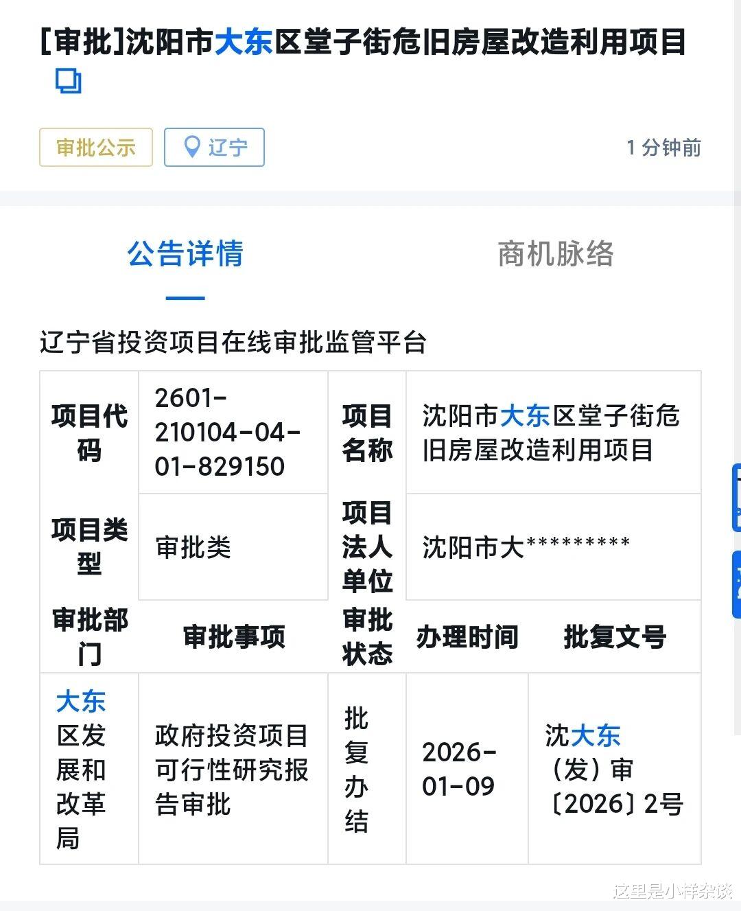 也不知道这个项目到底啥时候能真正改造,现在有个项目出现在了审批平台,这就是沈阳市大东区德增巷危旧房屋改造利用项目,这附近除了这个也没有啥算是危旧房屋了吧?
