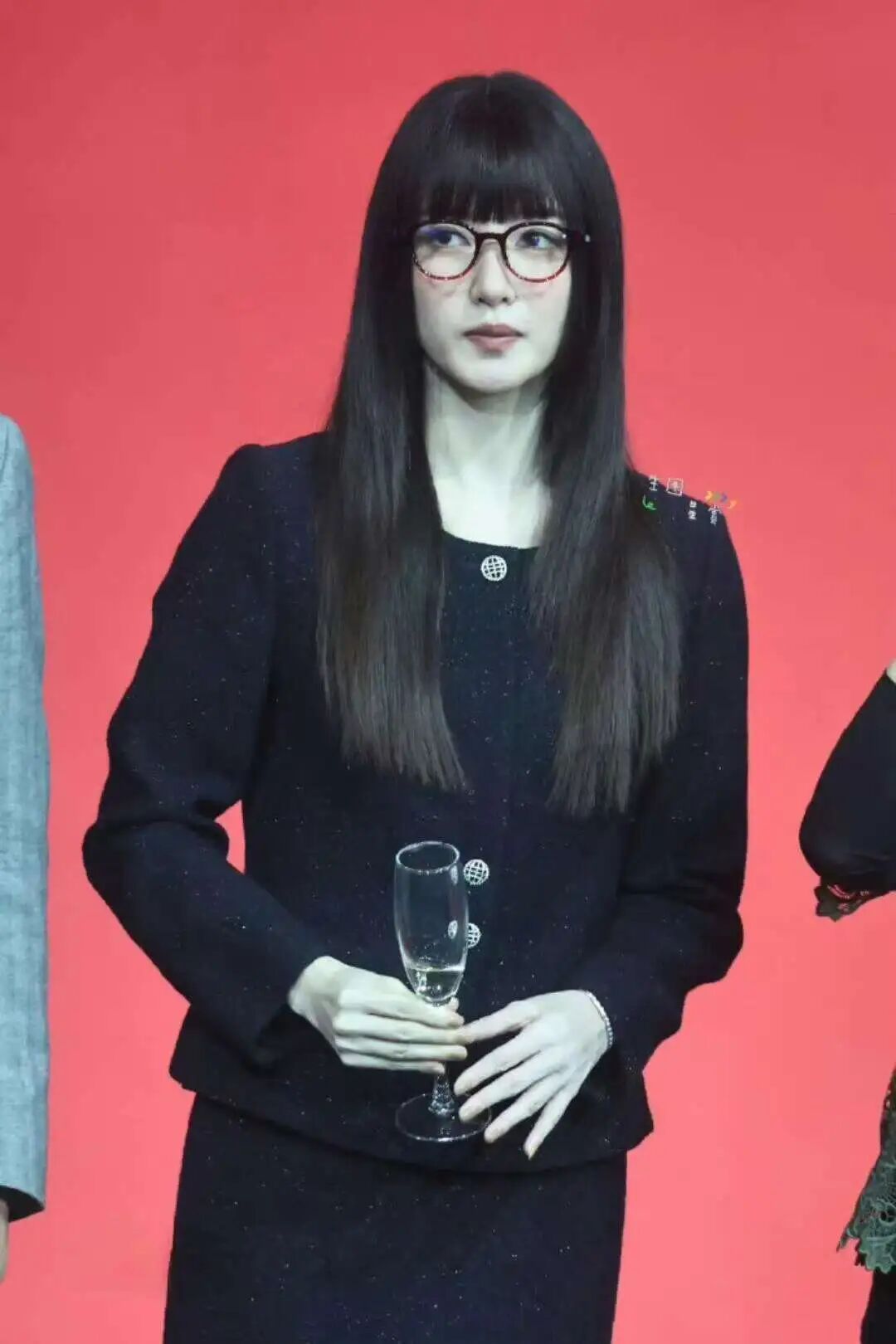 那个向来以明艳大气形象示人的女演员,竟以齐刘海、黑长直、黑框眼镜和包臀裙的造型现身,让熟悉她的观众直呼"认不出来"。