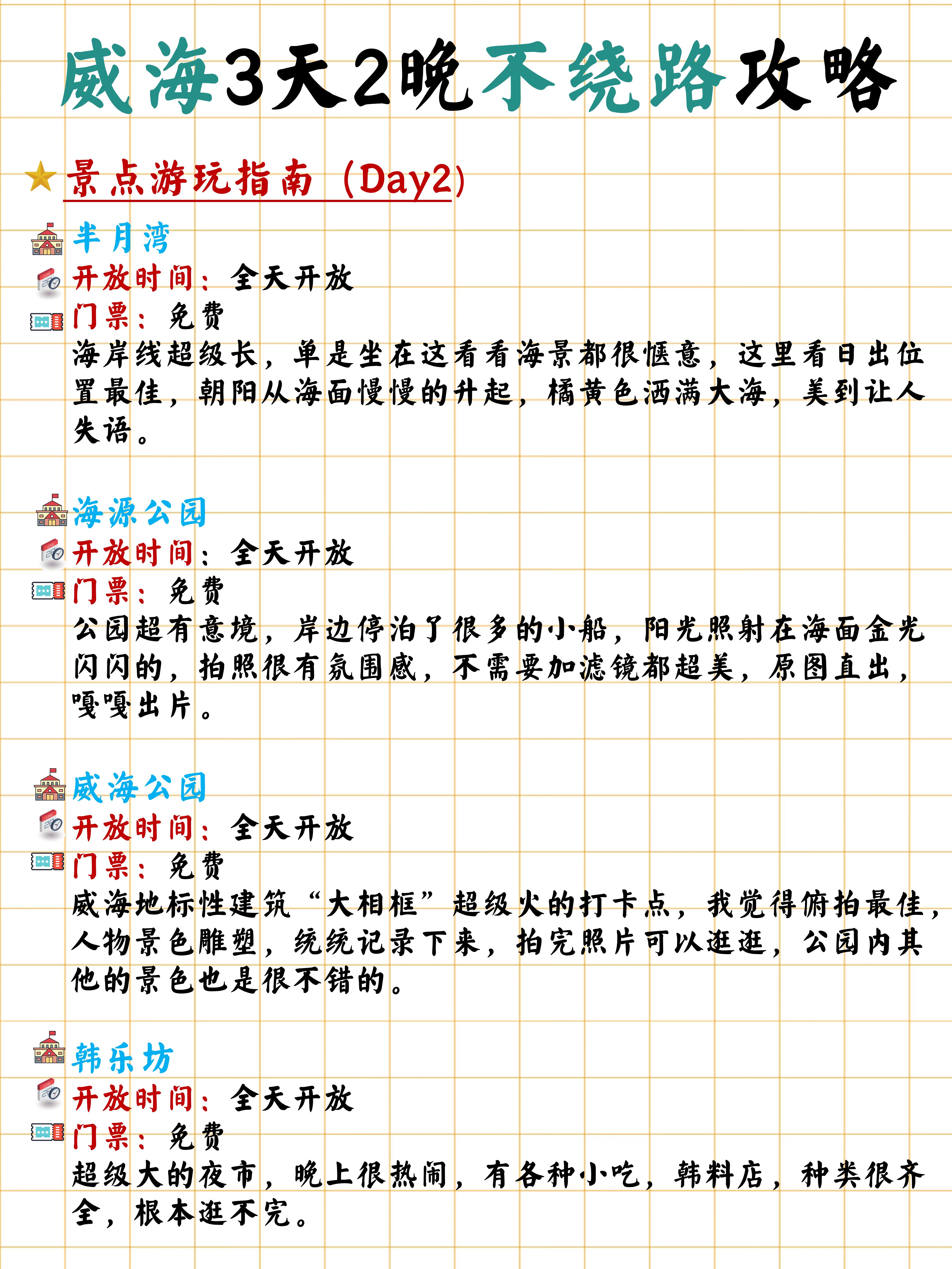 ➡️DAY2:半月湾→海源公园→威海公园→韩乐坊