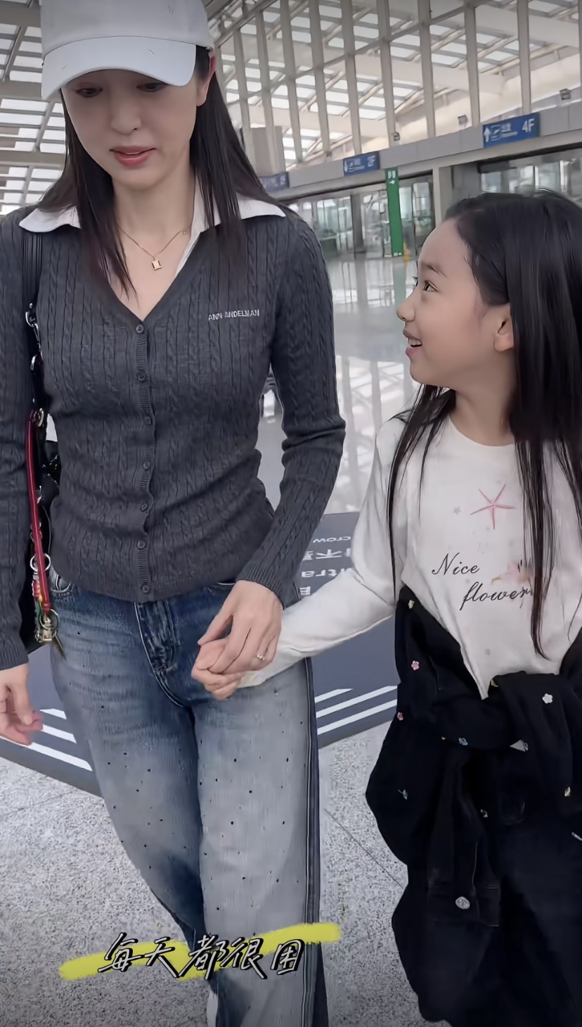 小酒窝的个子已经到妈妈肩膀了,母女俩长得一模一样的,都是圆润富态的鹅蛋脸,高鼻梁、小嘴巴。