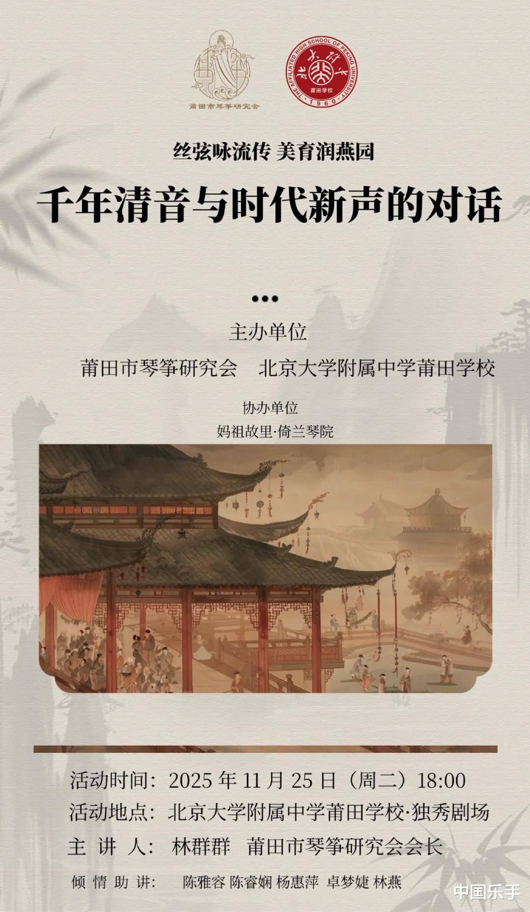 2025年11月25日晚,由莆田市琴筝研究会与北京大学附属中学莆田学校联合主办的“丝弦咏流传·美育润燕园”音乐赏析会,在北京大学附属中学莆田学校独秀剧场隆重上演。这是一次古典与现代的碰撞,更是一场浸润心灵的美育实践。