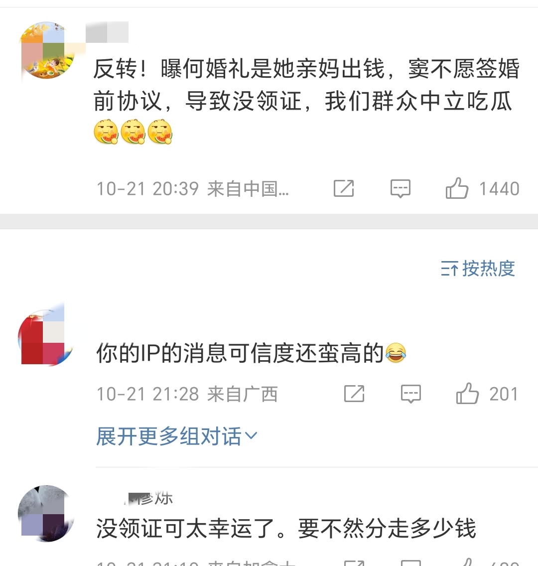 不过这话说的咋这么别扭呢?这就是物化女性啊!不过有知情人爆料,之所以没有领结婚证,是因为窦骁不愿意签婚前协议,婚礼是可以何超莲的亲妈出,但是窦骁不愿意签婚前协议,导致没领证。