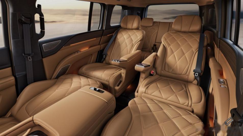 空间布局采用2+2+2六座设计,二排配备双零重力座椅,支持150°大躺角,并搭载18点按摩系统。内饰选用柚木与黑胡桃木饰板,搭配Nappa真皮座椅和天然羊毛脚垫,呈现出融合传统与现代的豪华氛围。