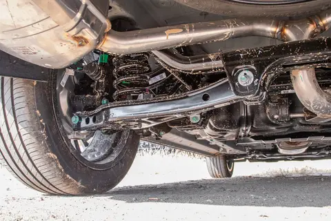 实际效果:它能有效过滤掉路面的细碎颠簸,经过减速带时悬挂处理得干净利落,没有多余弹跳。在高速过弯时,也能提供足够的支撑力,抑制车身侧倾。官方宣称可以实现"起步不抬头、刹车不点头、过弯不侧倾"的平稳质感。