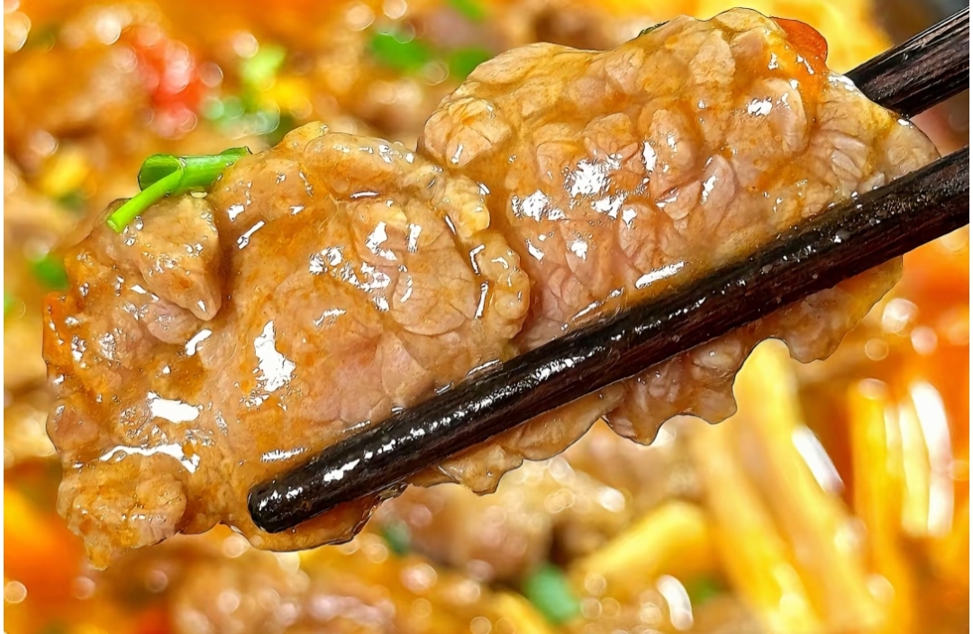 牛腩切成薄片,冷水下锅加姜片焯水(水沸即捞,避免肉质变老)。用40℃温水冲洗血沫,这个温度既去腥又不会让肉收缩。沥干后撒半勺盐、半勺糖抓匀,静置10分钟——糖分能激活肉纤维的吸水性。