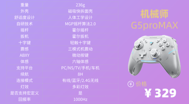 同样表现突出的还有沉浸式高精度L/R扳机,通过多级阻尼与微动结构模拟真实枪械后坐力与赛车油门阻力;并由TurboS电竞级非对称双马达提供256级细腻震感与方向反馈,沉浸感全面拉满。方向输入采用八向自由架构混合十字键,结合机械级微动ABXY按键,回弹干脆、触发迅速。同时支持一键可编程宏操作,复杂连招与技能释放更轻松。在百元价位里,这种操控规格已经接近千元级电竞旗舰的输入表现。