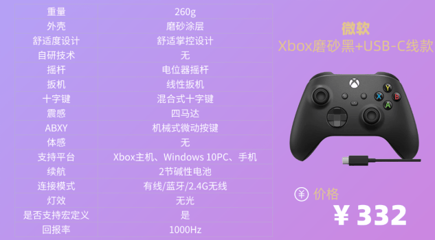 主流机型9:微 软X box磨砂黑+USB-C线款游戏手柄