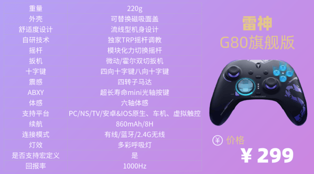主流机型6:雷 神G 80旗舰版游戏手柄