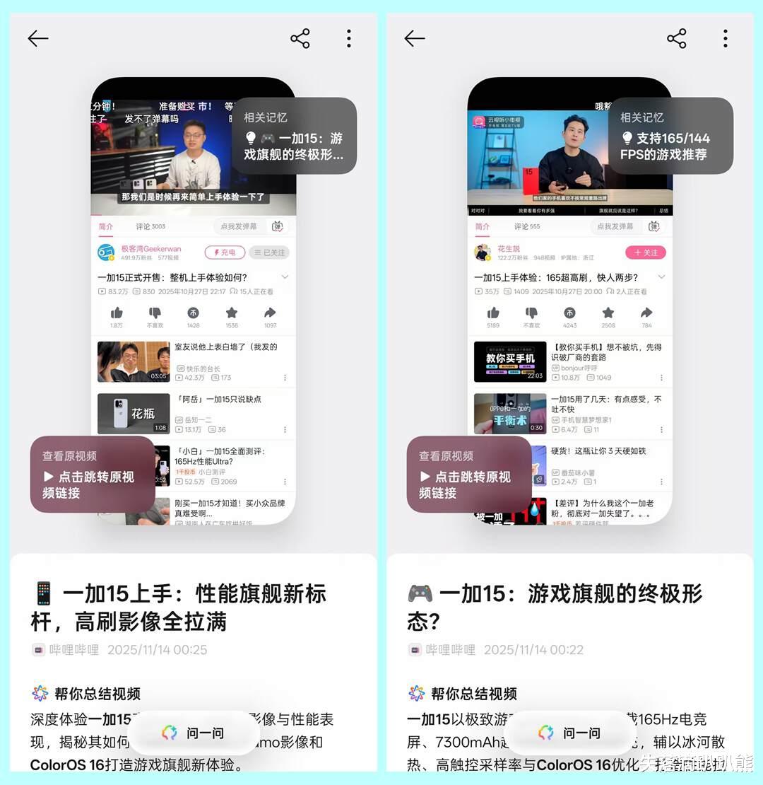 我还让小布帮我看了花生说、极客湾评测一加15的视频,在短视频时代让AI帮你看感兴趣的长视频也不失为一种节省时间的好办法。