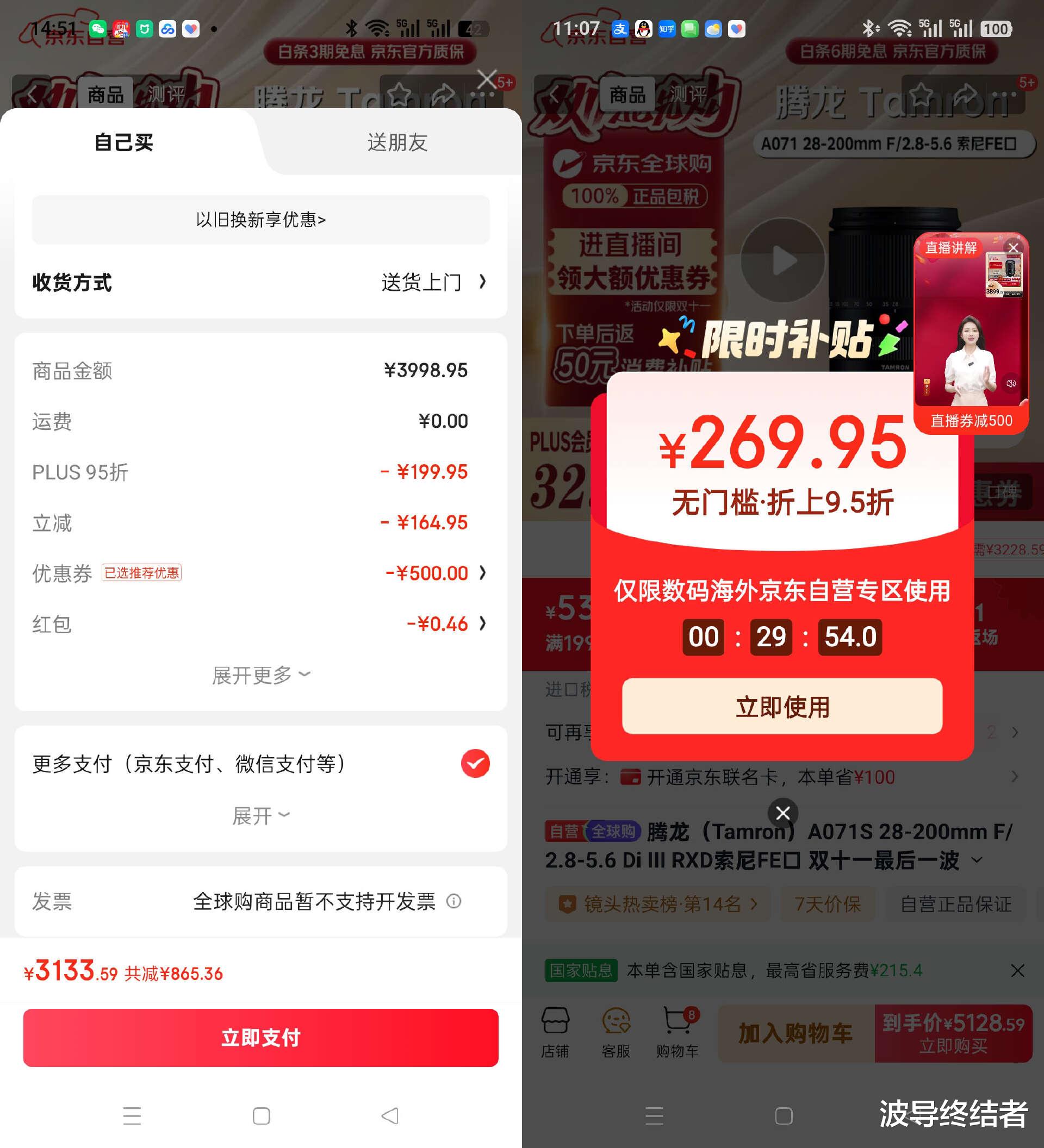 然后我当时是京东PLUS和天猫88VIP都待续的状态,就在看哪家更低。续了PLUS之后给了一张满500-50的券,可以和500的叠加,但好像之后还有800-80的PLUS券可以抢,不过听说也不好抢。还有支付的时候,信用卡减了80。这样来算的话,我到手的价值差不多是2819(不算PLUS开卡成本),根据评论区其他兄弟反馈,最低能到2620左右好像。