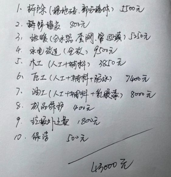 还有一点现在半包很爱玩的小把戏,就是刻意模糊掉清运费用,很多半包合同里明确写了拆除,但等到清运的时候,就直接狮子大开口,我甚至见过普通百平米多一点楼房户型3500多的垃圾清运费,也是很离谱了。
