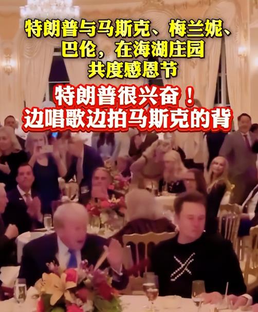 2024年11月28日,特朗普在海湖庄园大摆宴席,庆祝感恩节。