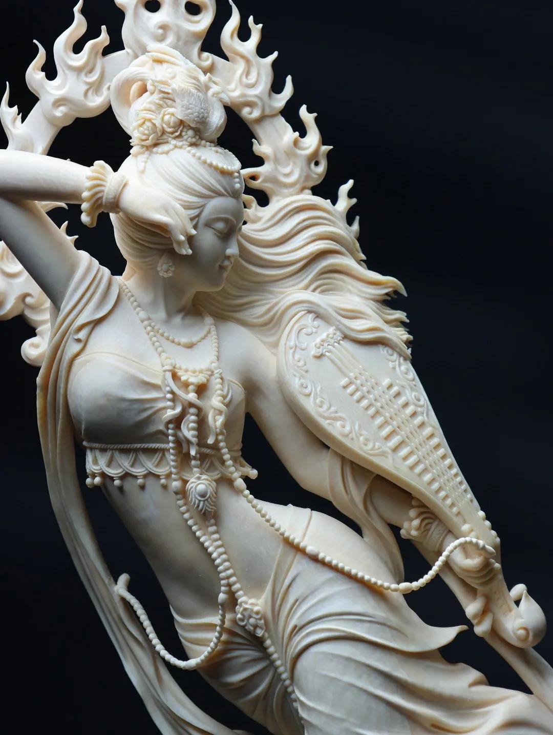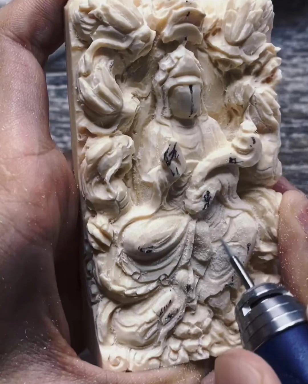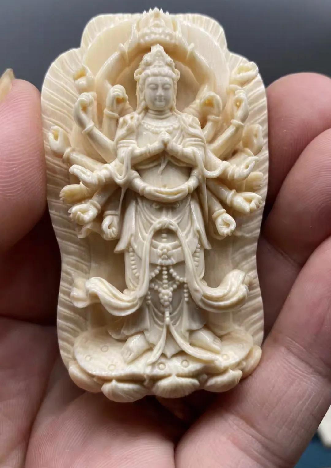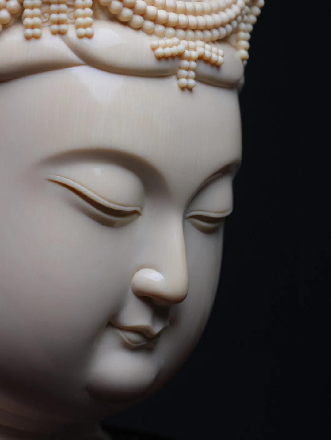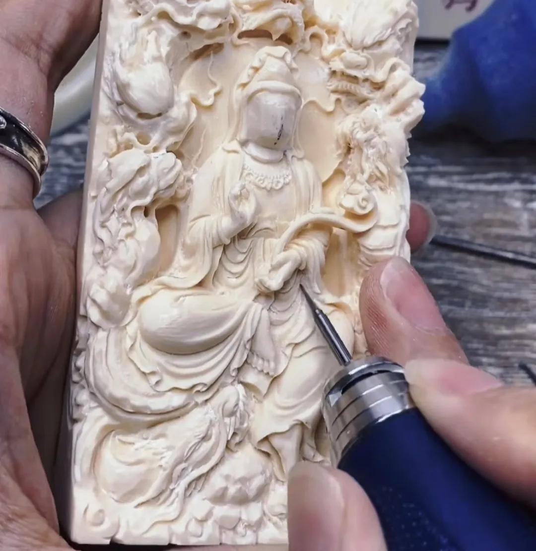 然后慢慢雕刻处理各处细节。这件猛犸象牙九龙观音最后大概耗时14天左右。给大家看看最后成品效果。