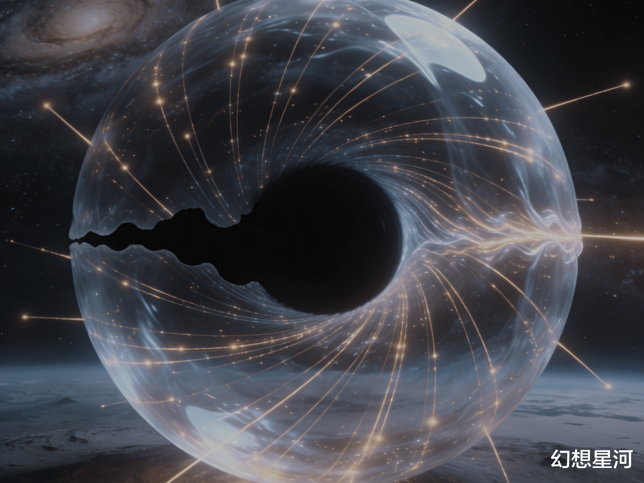 事件视界不算黑洞的表面,它是一道看不见的因果边界。一旦光子越过这道边界,时空的性质就会发生变化,空间和时间的角色发生了转换,原本的空间方向变成了时间方向,而所有的时间流逝都指向黑洞中心。这意味着,光子越过事件视界后,向前走不再是空间上的移动,而是时间上的必然,它只能一步步走向黑洞的核心奇点,再也没有回头的可能。