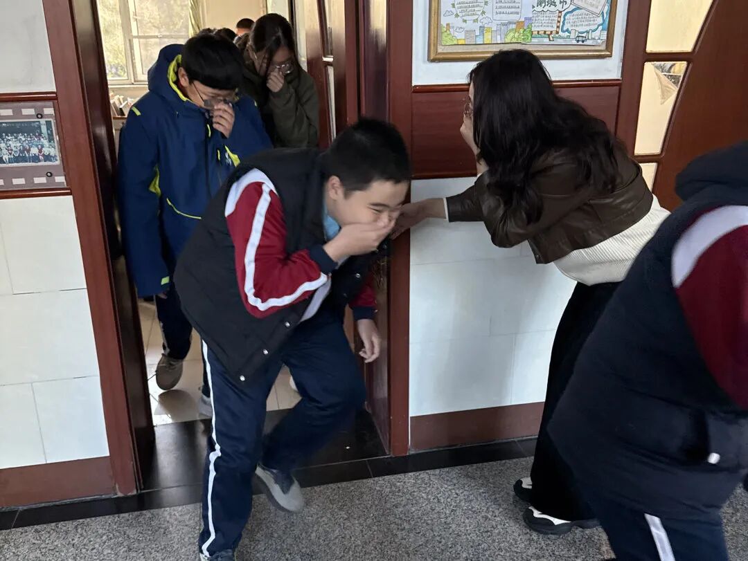 警报声划破校园的宁静,各班学生在班主任和任课教师的迅速引导下,立即进入应急状态。他们用手紧紧捂住口鼻,弯腰低姿,沿着预定的疏散路线快速而有序地撤离。楼道内,师生们默契配合,前队步伐急促却稳健,后队紧紧跟随,不推不挤。仅用了4分钟,全体学生便全部安全集结至操场指定区域。各班迅速清点人数,并及时向上级汇报,整个过程紧张而不慌乱,充分展现了学校日常安全教育的扎实成效。