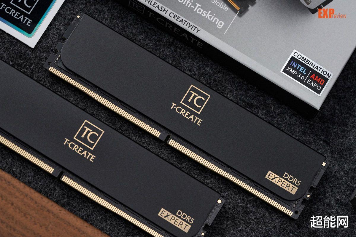 T-CREATE EXPERT引领者DDR5 128GB套装只有6400MT/s一种频率,而32GB和48GB容量套装最高频率能到7600MT/s。创作者向的产品设计普遍走简约风,这套EXPERT引领者DDR5也不例外,包装正面可以看到EXPERT引领者DDR5内存有黑色和白色两种颜色,左下角很明确的写着这是为内容创作者所准备的内存,右下角的贴标显示这内存同时支持Intel XMP 3.0和AMD EXPO,右上角则贴着内存的频率与容量。