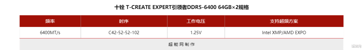 十铨的T-CREATE创作者系列内存本身就是面向内容创作者的,而旗下的EXPERT引领者系列DDR5内存则是面向消费端平台的高端型号,这款内存有着相当多的容量与频率组合,最大容量可达128GB(64GB*2), 而且频率能到6400MT/s,是128GB容量的内存套装中频率比较高的,它也是我们今天要测试的内存套装。