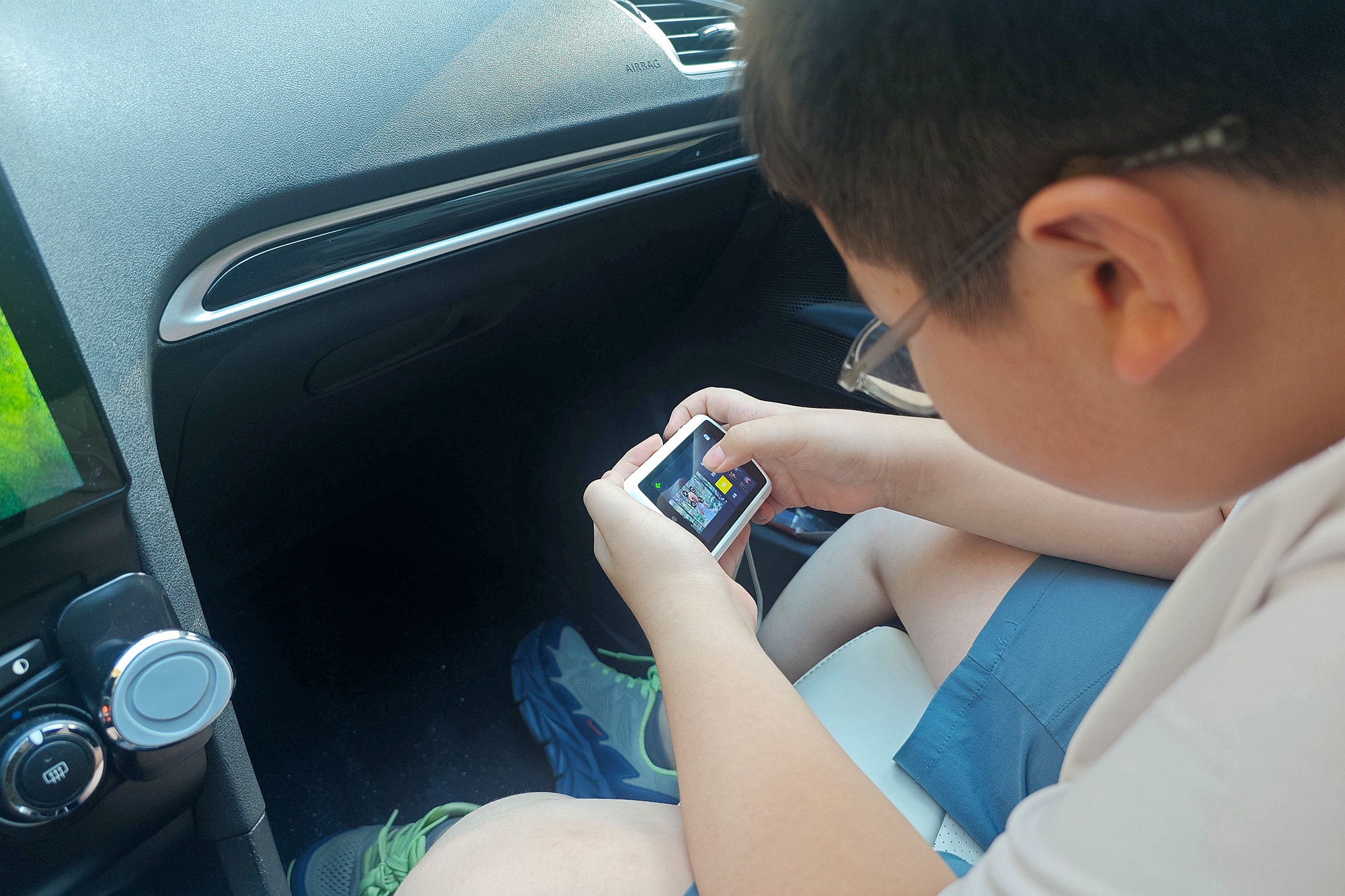 拍完照后在车上,他忍不住要给自己拍的照片进行AI创意特效,你看他给妈妈换发型的时候玩的多入迷呀。松典 DC310的创意特别丰富,像AI拍景成画、AI替换发型、AI智能美颜、AI艺术特效、贴纸等应有尽有,他用手指在3.6英寸IPS触摸屏上轻轻一点、一拖,就能把贴图精准“粘”到妈妈照片的发型位置。看着原本简洁的发型,被自己贴上灵动的卡通图案,他玩得格外入迷,一会儿给妈妈“戴”上朵粉嫩小花,一会儿又换成亮闪闪的蝴蝶结,反复尝试不同组合,连车窗外掠过的风景都顾不上瞧,完全沉浸在给妈妈照片“装扮”的趣味创作里。