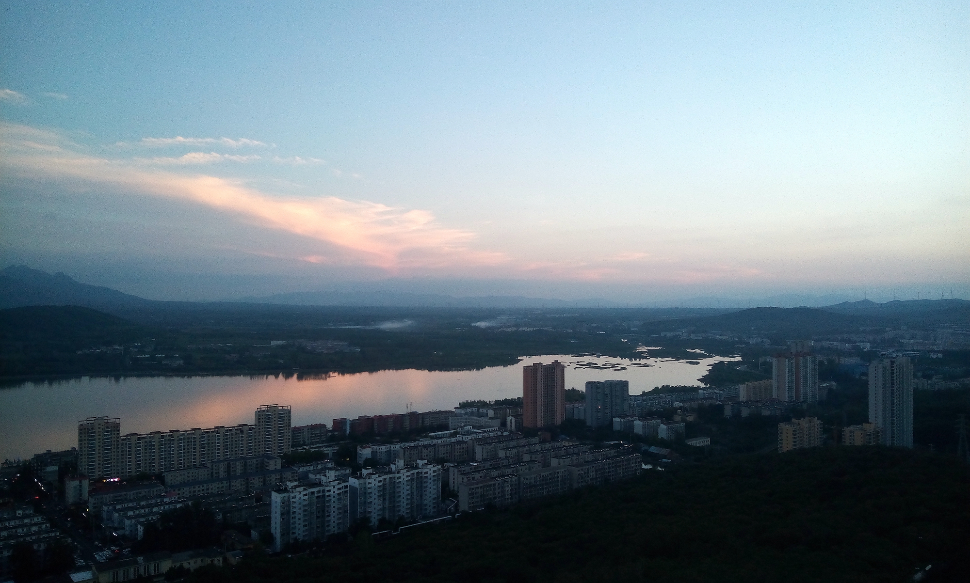 爷爷奶奶年龄大了,爬山不太方便,我带着他爬到山顶去取景。我俩爬到山顶时,黄昏正给城市镀上柔粉霞光。儿子立刻举起松典DC310,对着山下湖光与楼宇交织的景色认真取景。看成片是不是特别给力,把黄昏天空的渐变色彩、湖面倒映的霞光,还有远处山峦的朦胧轮廓都清晰地收进画面里。拍完后,他赶紧让我用读卡器把照片发给爷爷奶奶看。