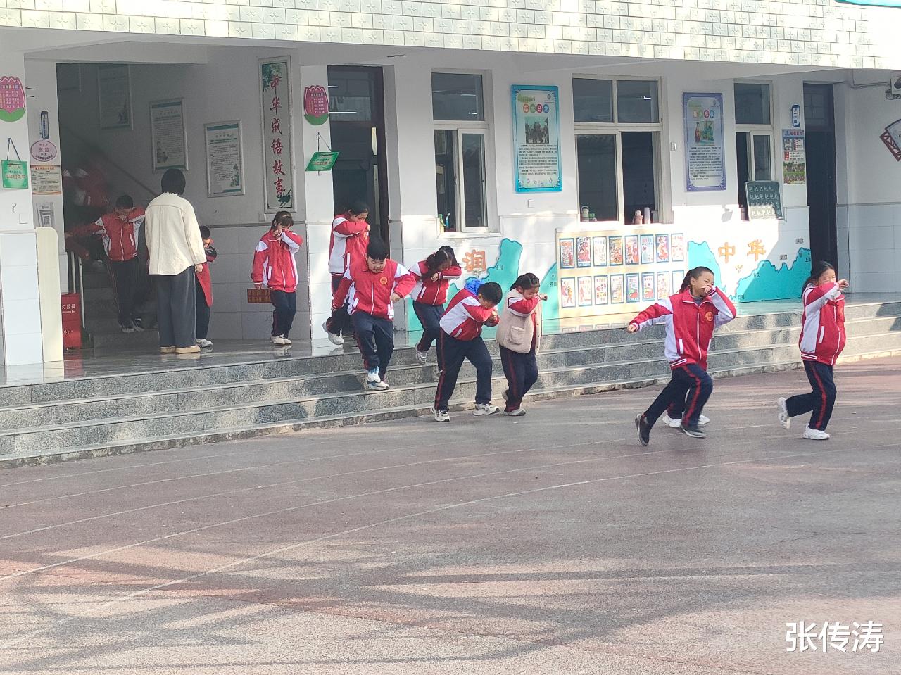 上午9:50,警报声响起,演练正式启动。各班班主任迅速组织学生分前后门撤离,同学们用毛巾或衣袖捂住口鼻,弯腰低姿沿指定路线快速移动。东、西楼梯口及各楼层转台的负责老师坚守岗位,及时引导学生分流,避免拥挤推搡,整个疏散过程紧张有序、衔接顺畅。短短3分钟内,全体师生安全疏散至操场指定区域,各班迅速清点人数并汇报,经核实全员到齐,无一人遗漏,疏散用时符合预期。