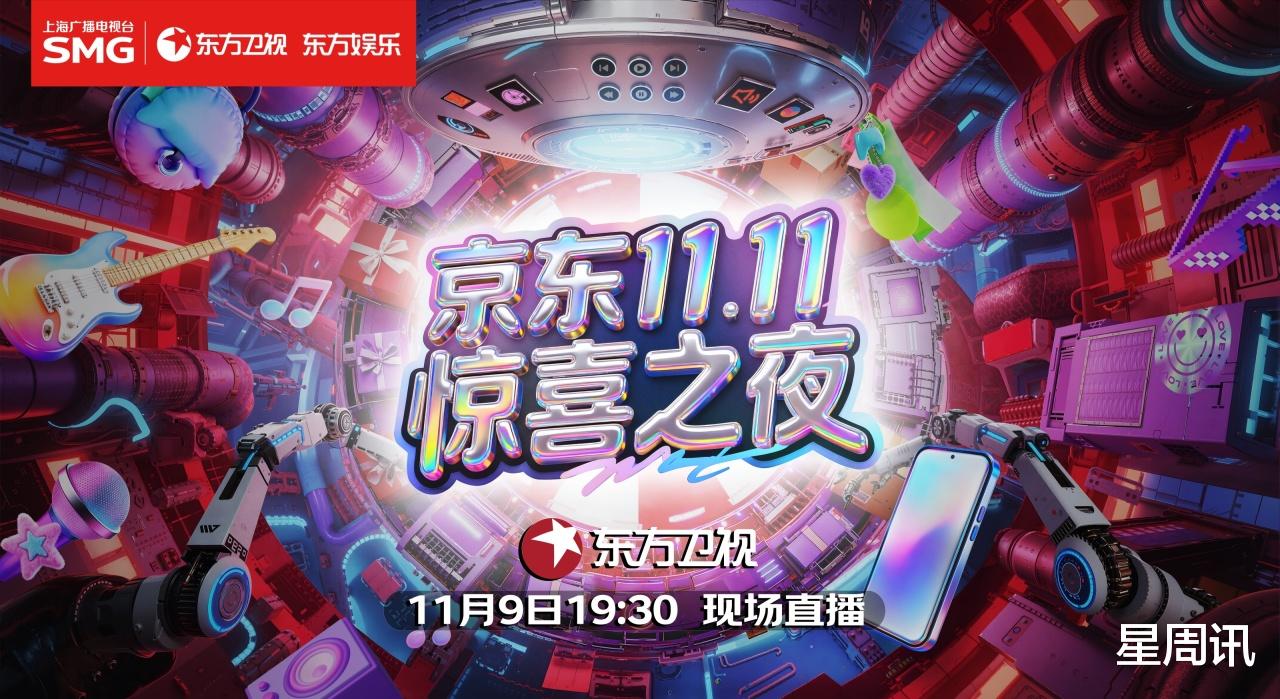 11月9日,由上海广播电视台东方卫视与京东联合出品、东方娱乐承制,京东手机独家冠名,并携手京东买药、京东家电家居及郎酒等行业品牌共同打造的《京东11.11惊喜之夜》在上海大舞台圆满落幕。阿云嘎、锤娜丽莎、TOP登陆少年组合、范晓萱、希林娜依·高、郭冠廷、李川、刘恋、刘宇、刘宇宁、刘雨昕、米卡、潘玮柏、SHarK米尔艾力、吴宣仪、薛之谦、祝绪丹(按姓名首字母排序)加盟呈现这场惊喜演出,通过6小时不间断现场直播,从红毯到探班到舞台,以及第二现场的“一飞冲天红包机”,打造了一场融合视听享受与消费体验的狂欢盛典。