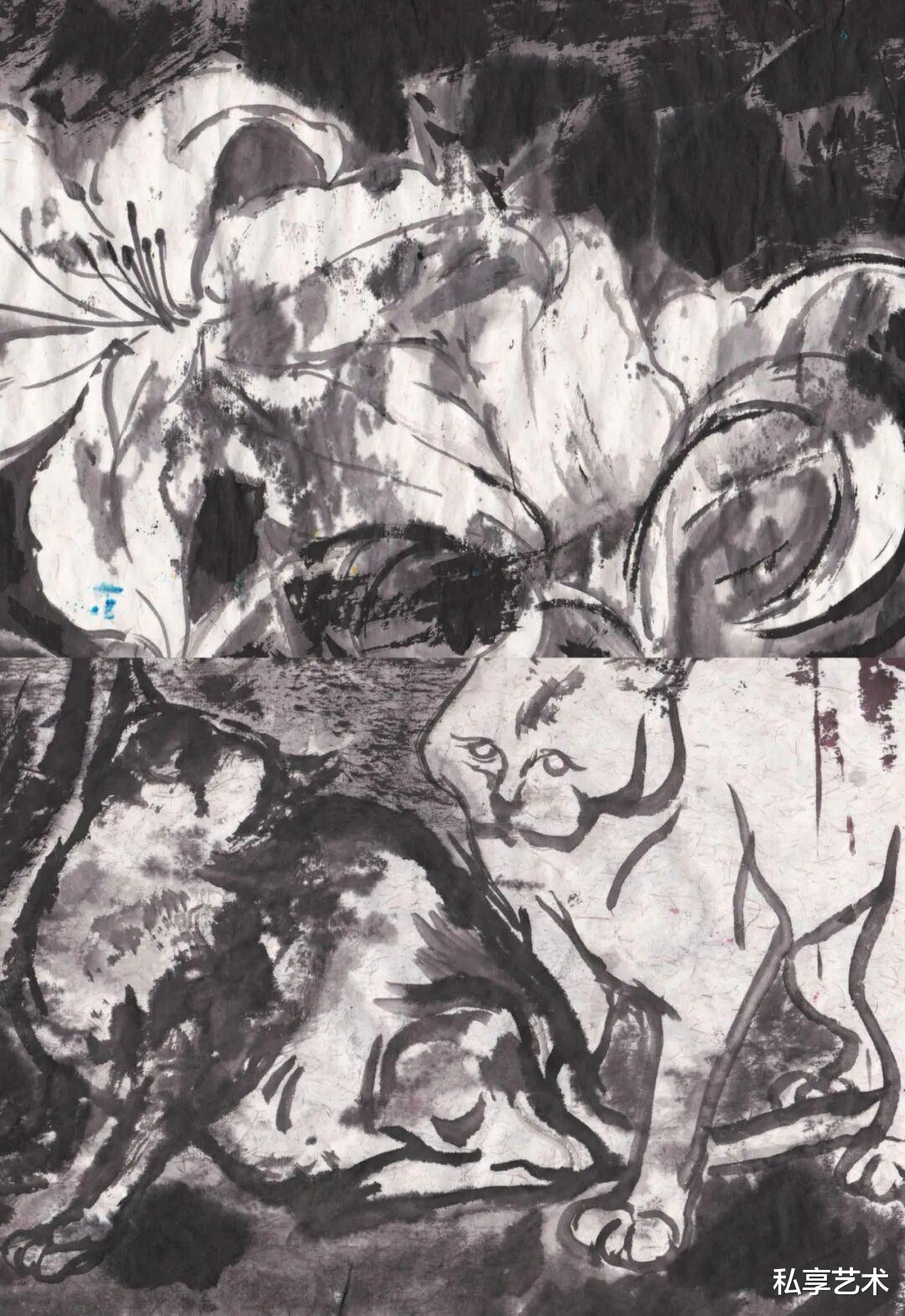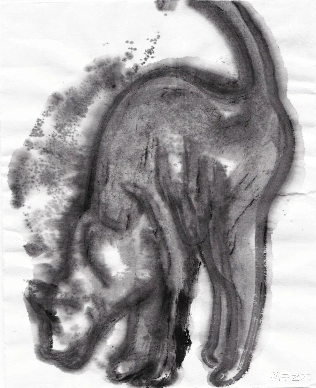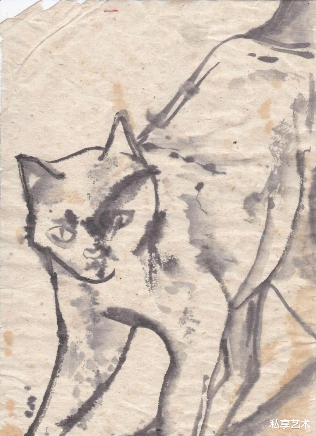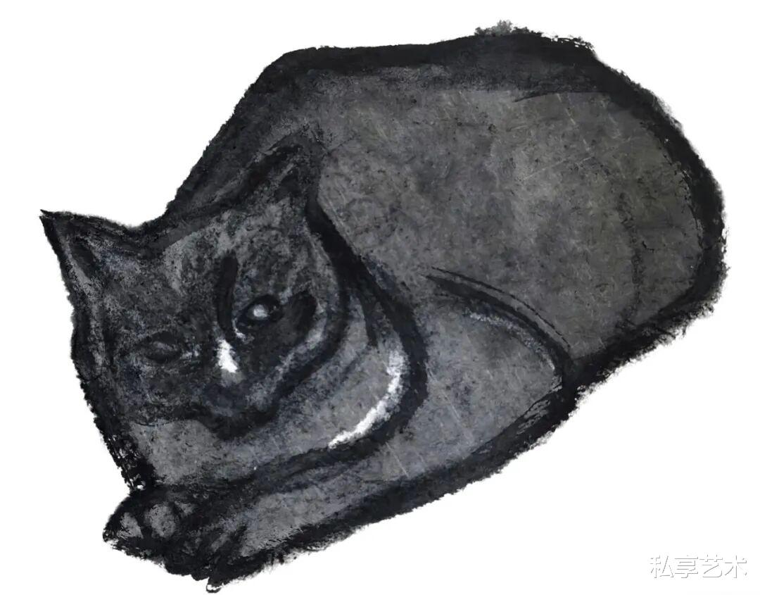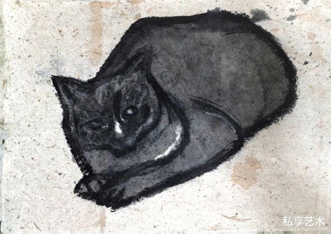 孟可手稿猫的系列,正是追求了一个真实的心象与感受而引发的视觉思考,进而催生了笔墨与造型的深入体验,西集野猫的生活现场成为她表达的引擎,情感与表象直抒,简单质朴,有声有色。孟可的世界是属于孟可的观察与感动,充满爱意,野猫坚强的生命力,犹如孟可对绘画的坚韧与执着,这坚韧来自于她对生命的高亢追求与感恩;孟可也是脆弱的,这脆弱出于她对弱小生命的关爱与怜悯,生命的相对性使得艺术充满了人性的光辉,她从水墨的实践到精神的指向表达自己的态度,赋予图像充满了生命的趣味。孟可的绘画是有样子的,这样子恰恰是绘画最重要的视觉建构,由技入道是每一个艺术创作者的个体探究与深度的追问,对生活的触摸与观照,是我们在完成了基本的艺术修养与能力规范后必然的选择。