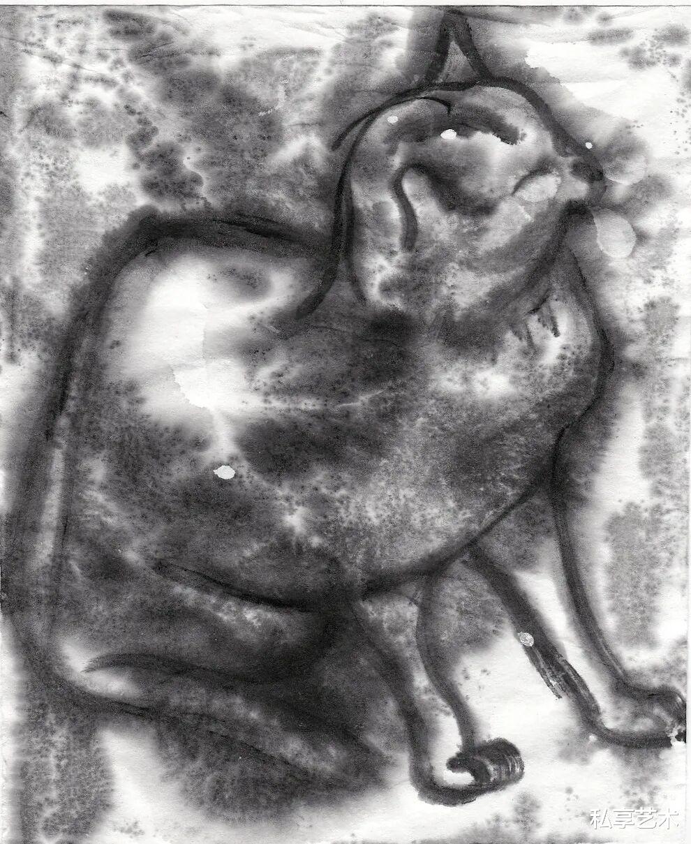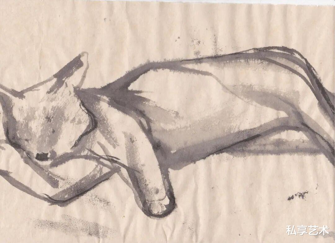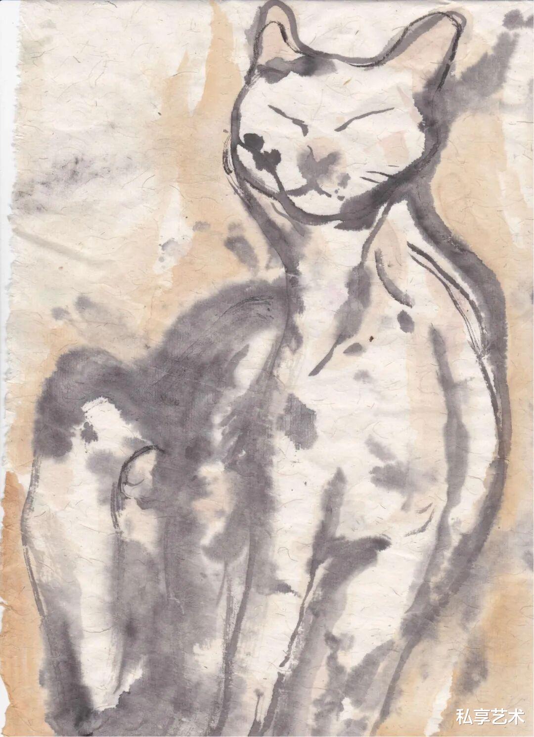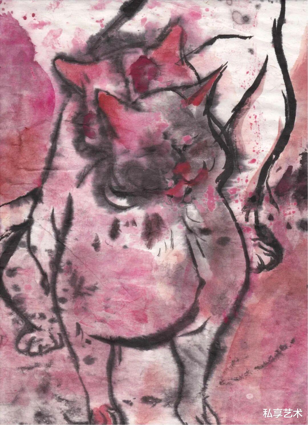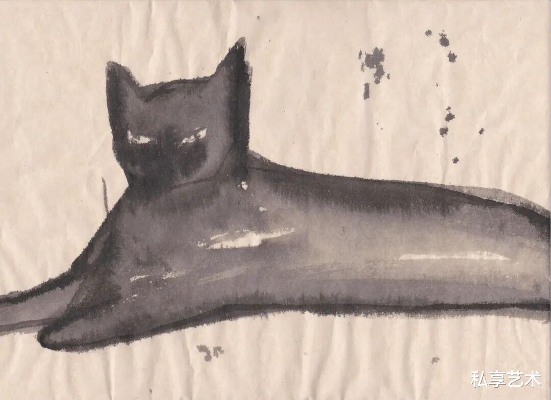 孟可手稿猫的系列,正是追求了一个真实的心象与感受而引发的视觉思考,进而催生了笔墨与造型的深入体验,西集野猫的生活现场成为她表达的引擎,情感与表象直抒,简单质朴,有声有色。孟可的世界是属于孟可的观察与感动,充满爱意,野猫坚强的生命力,犹如孟可对绘画的坚韧与执着,这坚韧来自于她对生命的高亢追求与感恩;孟可也是脆弱的,这脆弱出于她对弱小生命的关爱与怜悯,生命的相对性使得艺术充满了人性的光辉,她从水墨的实践到精神的指向表达自己的态度,赋予图像充满了生命的趣味。孟可的绘画是有样子的,这样子恰恰是绘画最重要的视觉建构,由技入道是每一个艺术创作者的个体探究与深度的追问,对生活的触摸与观照,是我们在完成了基本的艺术修养与能力规范后必然的选择。