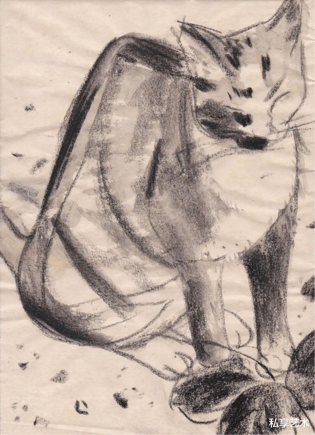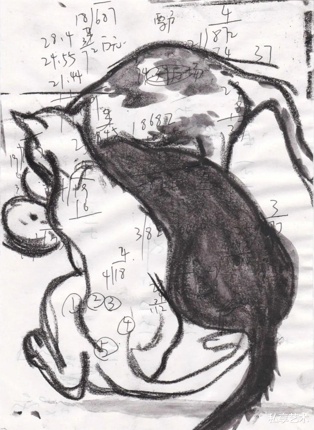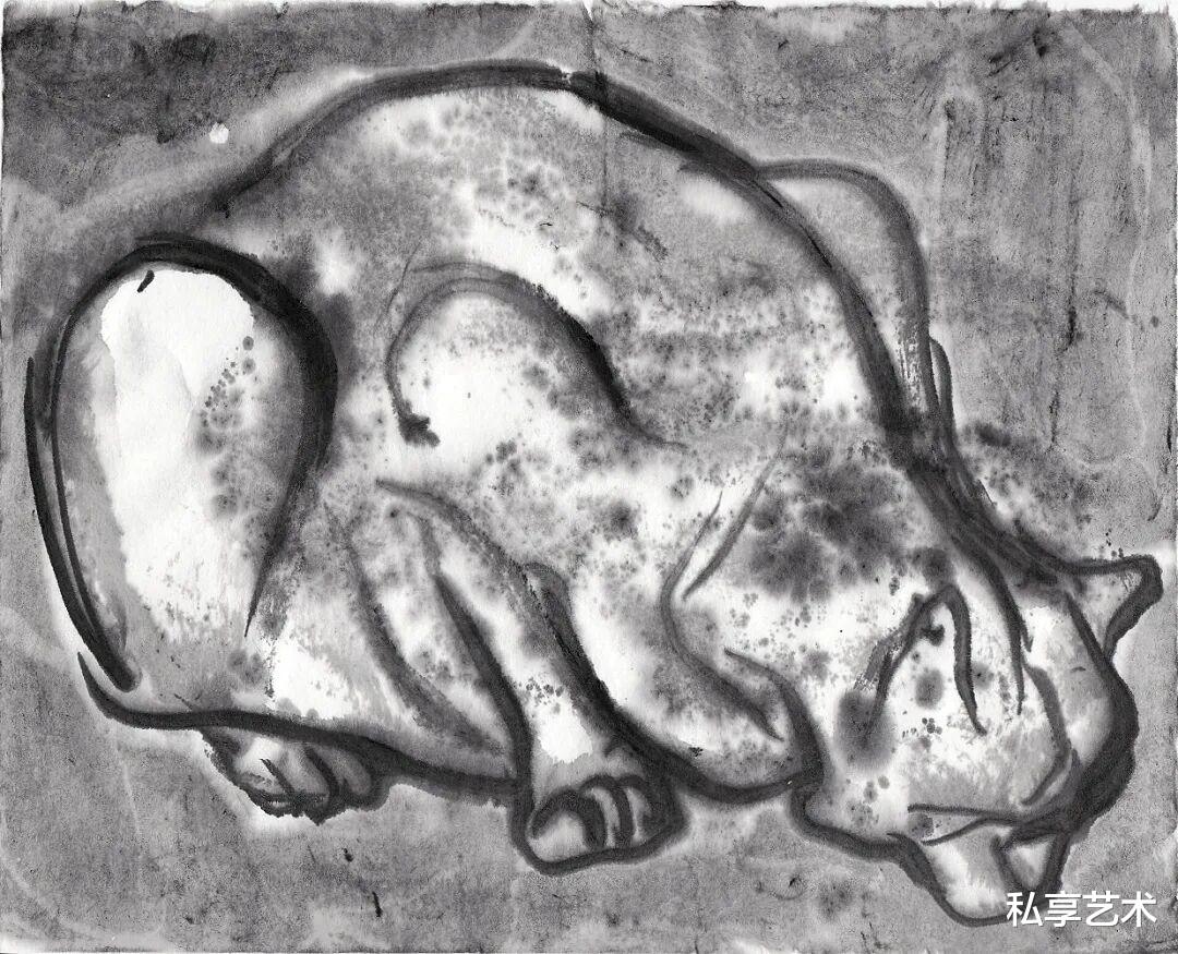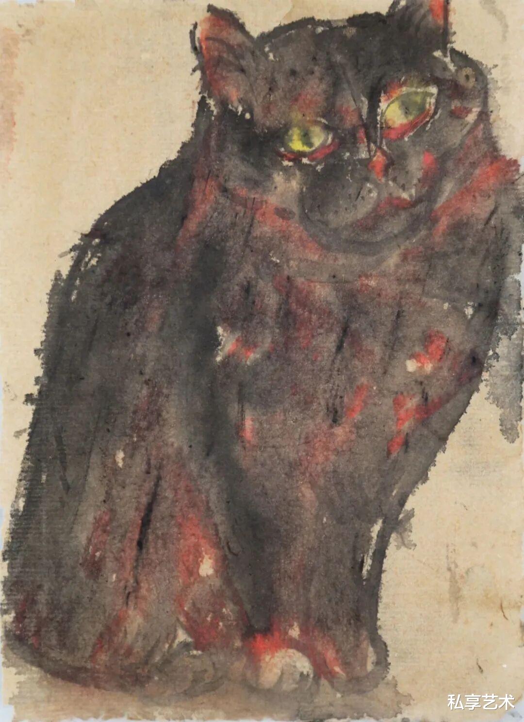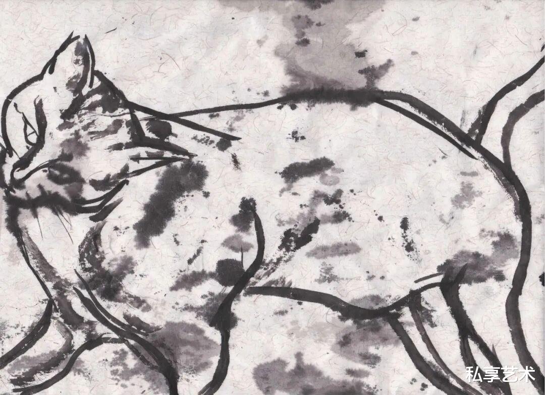 孟可手稿猫的系列,正是追求了一个真实的心象与感受而引发的视觉思考,进而催生了笔墨与造型的深入体验,西集野猫的生活现场成为她表达的引擎,情感与表象直抒,简单质朴,有声有色。孟可的世界是属于孟可的观察与感动,充满爱意,野猫坚强的生命力,犹如孟可对绘画的坚韧与执着,这坚韧来自于她对生命的高亢追求与感恩;孟可也是脆弱的,这脆弱出于她对弱小生命的关爱与怜悯,生命的相对性使得艺术充满了人性的光辉,她从水墨的实践到精神的指向表达自己的态度,赋予图像充满了生命的趣味。孟可的绘画是有样子的,这样子恰恰是绘画最重要的视觉建构,由技入道是每一个艺术创作者的个体探究与深度的追问,对生活的触摸与观照,是我们在完成了基本的艺术修养与能力规范后必然的选择。