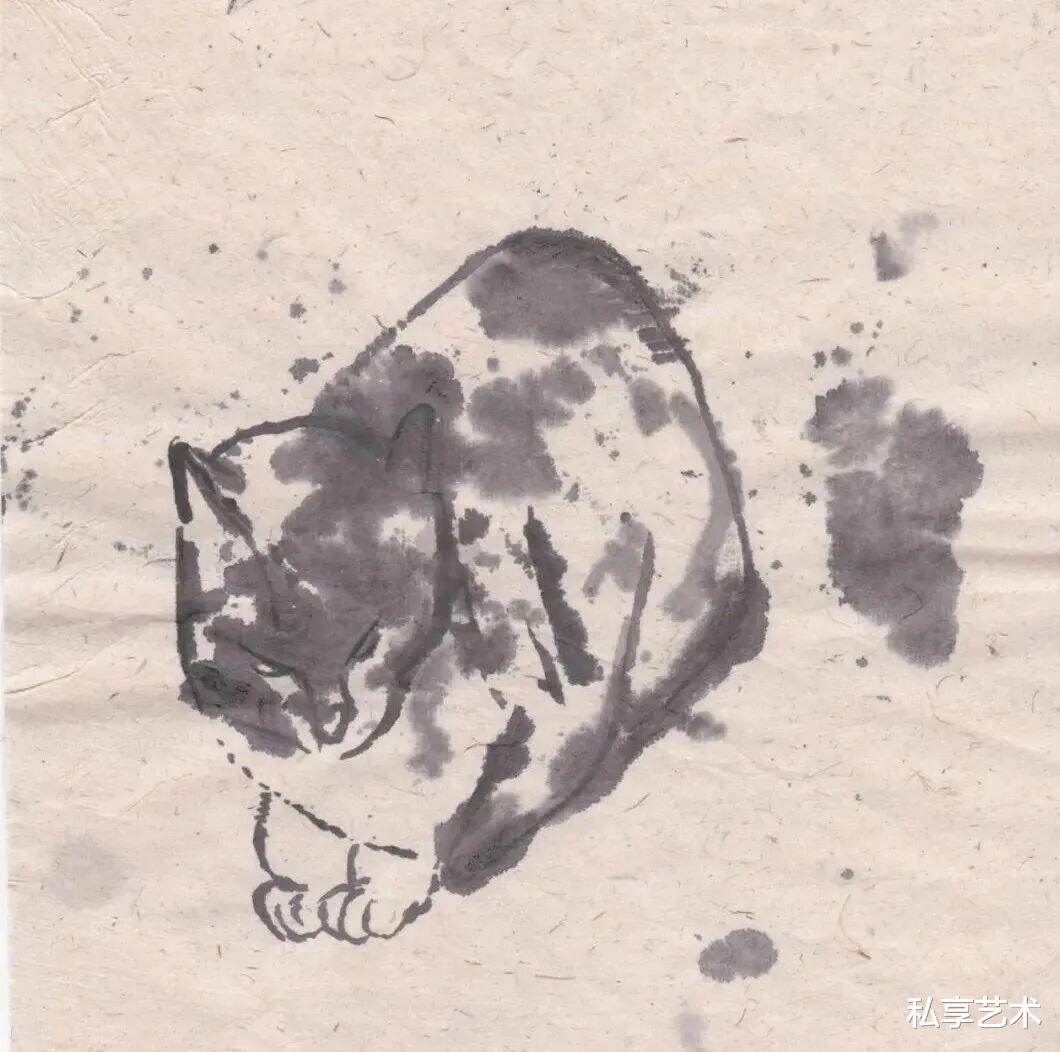 《西集的猫10》-22×24cm-纸本水墨-2024