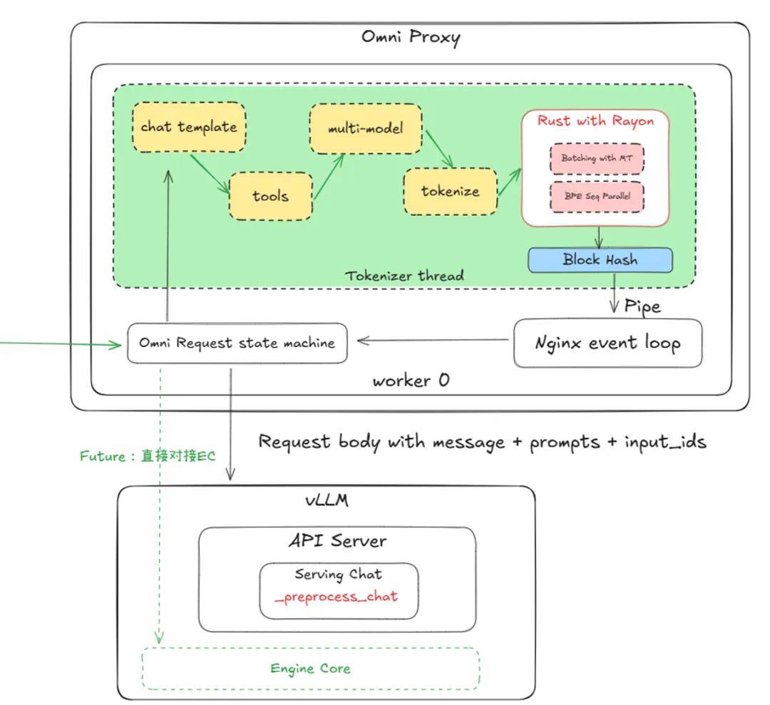 在以全生命周期监控、APC 感知调度、Tokenizer 复用和负载感知的 P/D 协同调度为主线的调度体系下,Omni Proxy 的系统吞吐量和推理效率又提升了一个台阶。