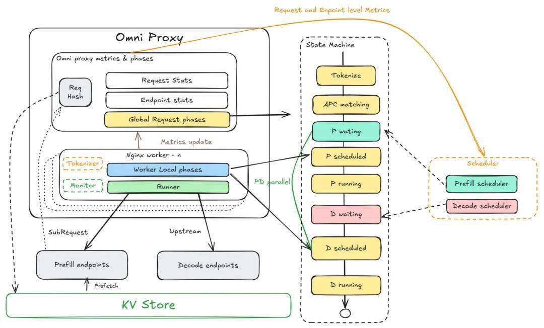 Omni Proxy 的六大创新点不是零散的功能补丁,而是进行了一次系统性整合升级,打造出一套面向超大规模 MoE 推理的高性能调度基础设施,让模型在推理链路中保持可控的延迟和稳定的吞吐。
