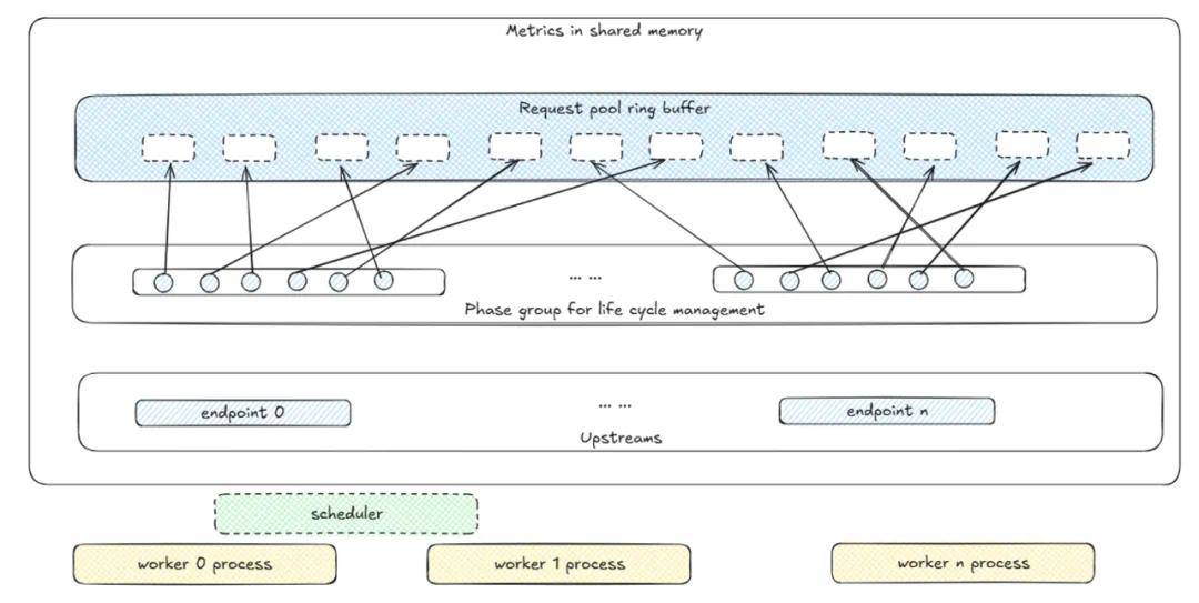 创新 6:结合主从调度与共享内存的数据聚合机制,在多 worker 架构下实现全局一致的调度决策与低开销的性能同步,确保系统高可用性与扩展性。
