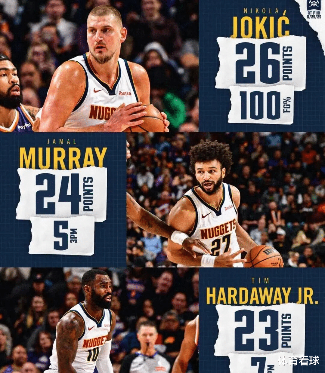 掘金昨日被马刺18分逆转,无缘晋级NBA杯赛!今日背靠背作战,客场挑战太阳,最终130-112击败了对手。当家球星,约基