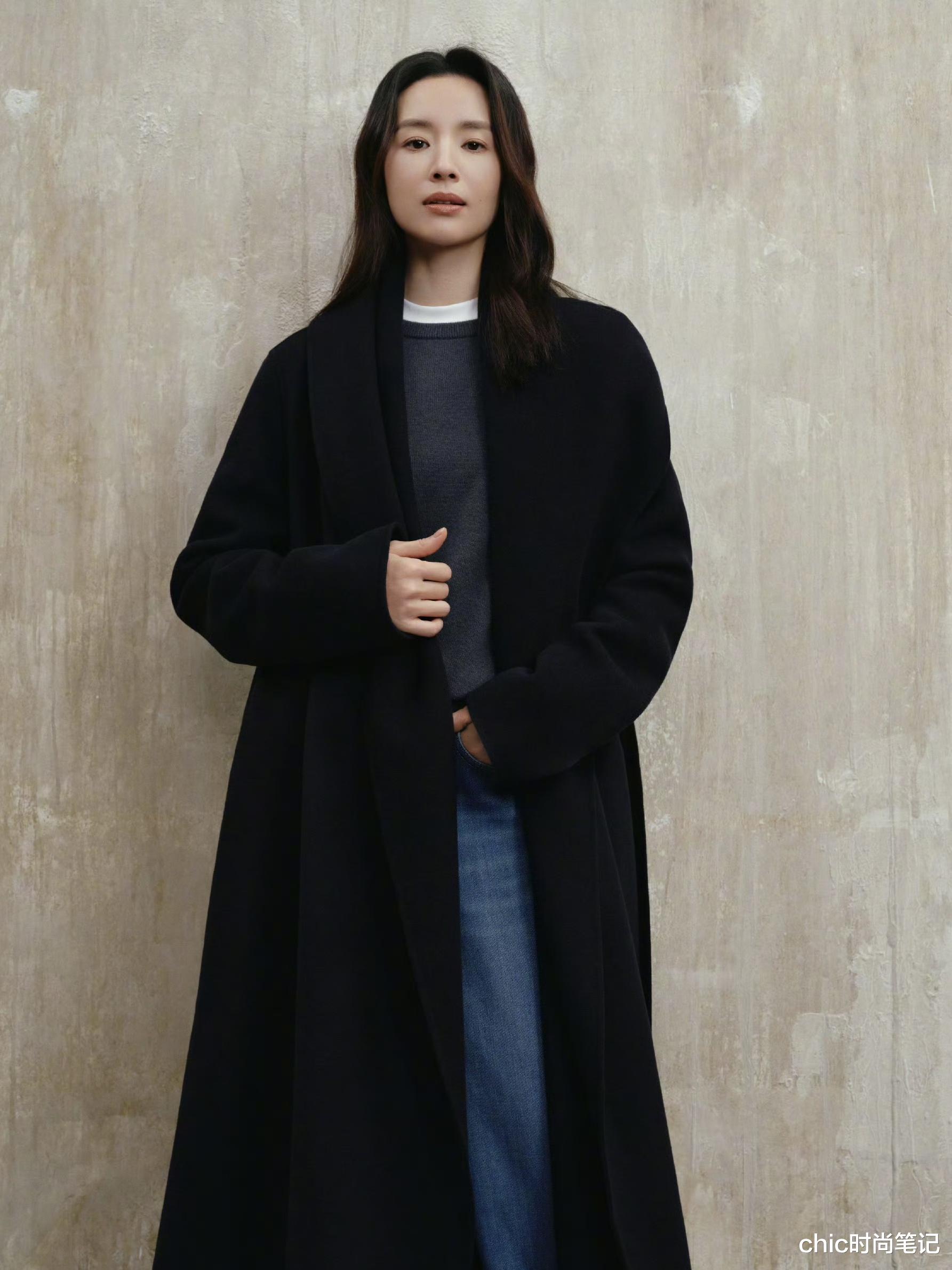 长款羊绒大衣非常的显气质,尤其是40+的女人,褪去了青涩的模样,把优雅和知性刻在骨子里。内搭深色针织和深色牛仔裤,低调且充满质感。