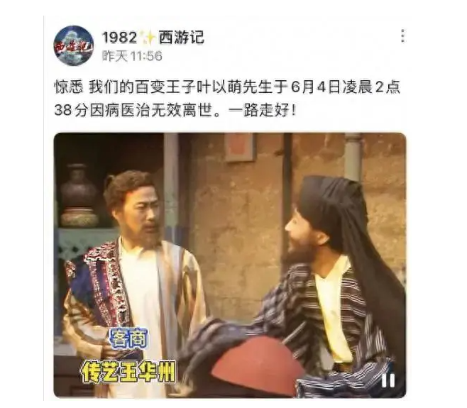 如今,叶以萌的离去,让《西游记》剧组又少了一位灵魂人物,也让无数观众的 “西游记忆” 多了一丝遗憾。但他塑造的那些经典角色,将永远留在观众心中,成为影视史上的不朽丰碑 。