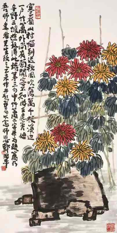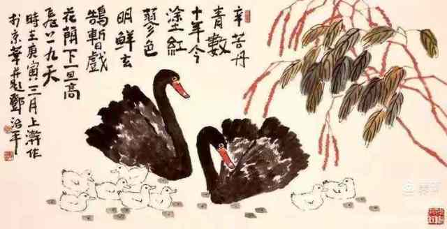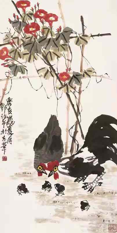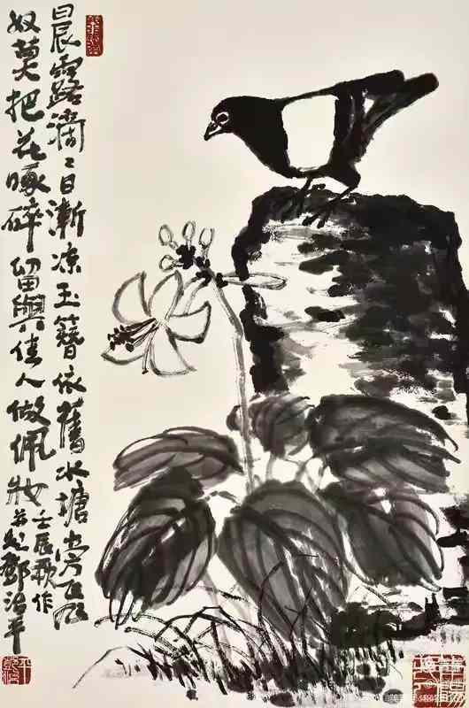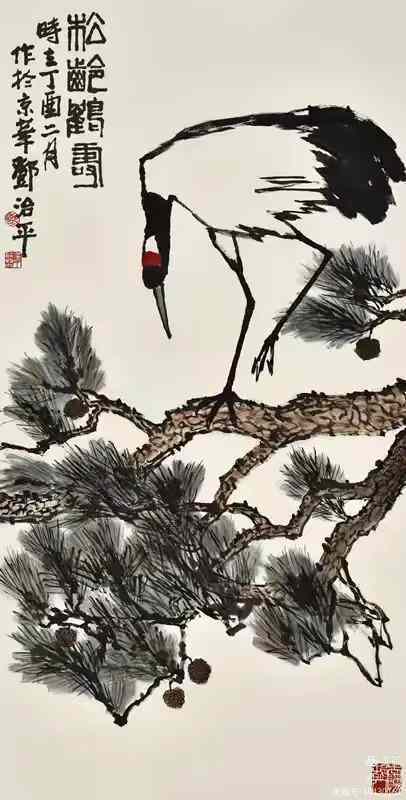 邓治平的艺术素养极为全面,除画花鸟画外,亦画山水、人物。他的作品笔墨浑厚、色彩明快、气势磅礴,在继承传统的基础上大胆创新,自成家数。