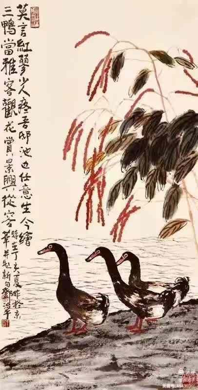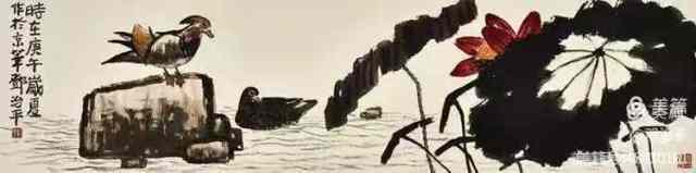 他先到了浙江水乡绍兴,这里有大禹、王羲之、陆放翁的足迹,有着蔡元培、鲁迅、罗家伦的故居和随处可见的古越文化遗风,乘兴之余,他画下《东湖佳境》作为纪念。接着,他来到盛夏的河北白洋淀,体会北方水乡的特有韵味。他的祖籍在容城县南阳村,离这里不远,有着太多的故事,十里荷花淀的美景也太令他向往了,后来创作了得意之作《荷塘鸳鸯》以记此行。